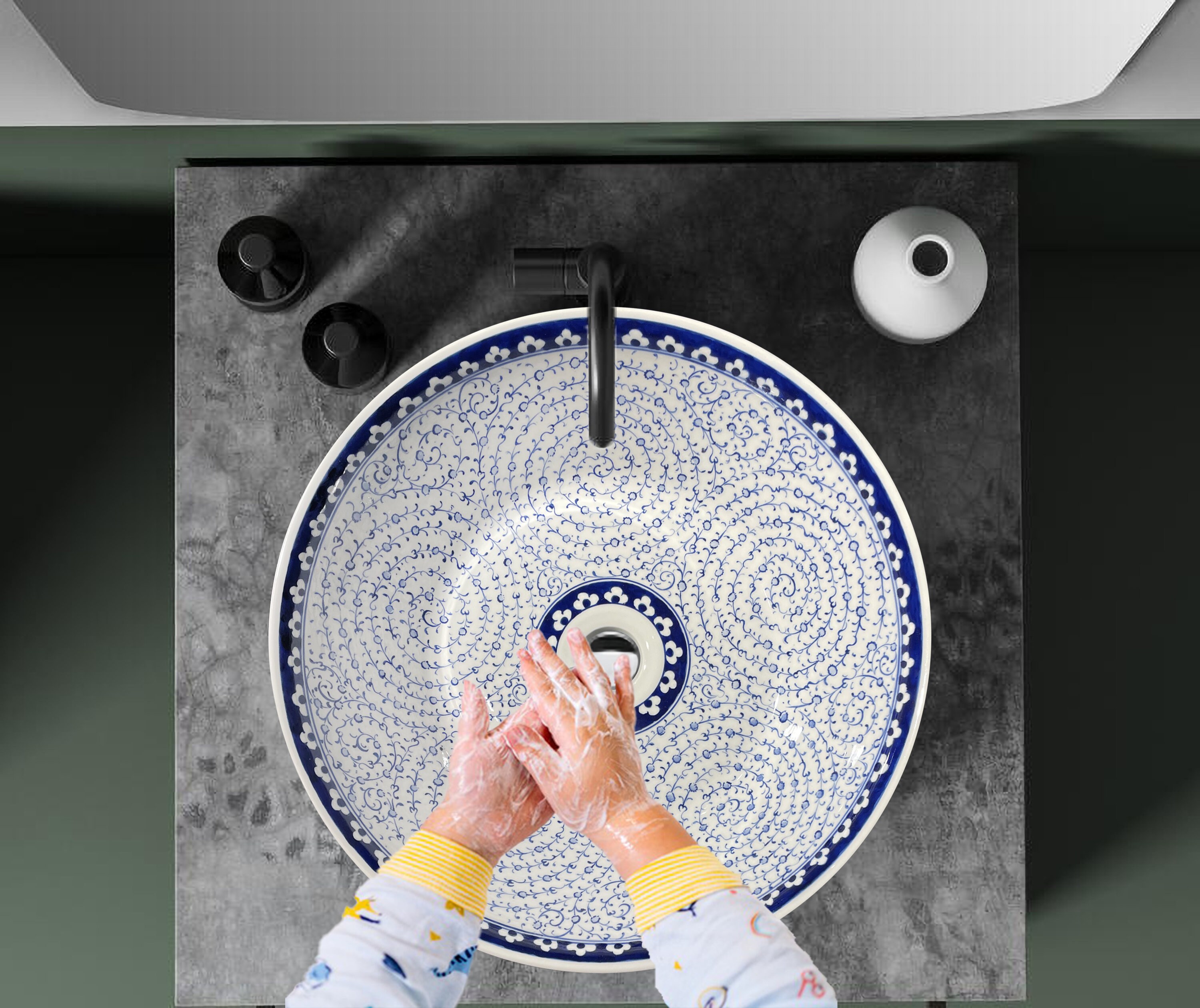5 Design Bathroom Vanity Sink Countertop Washbasin Blue Blanc Ceramic Vessel Sink Floral Round Washroom Sink Bohem Bathroom Rebuild Etsy